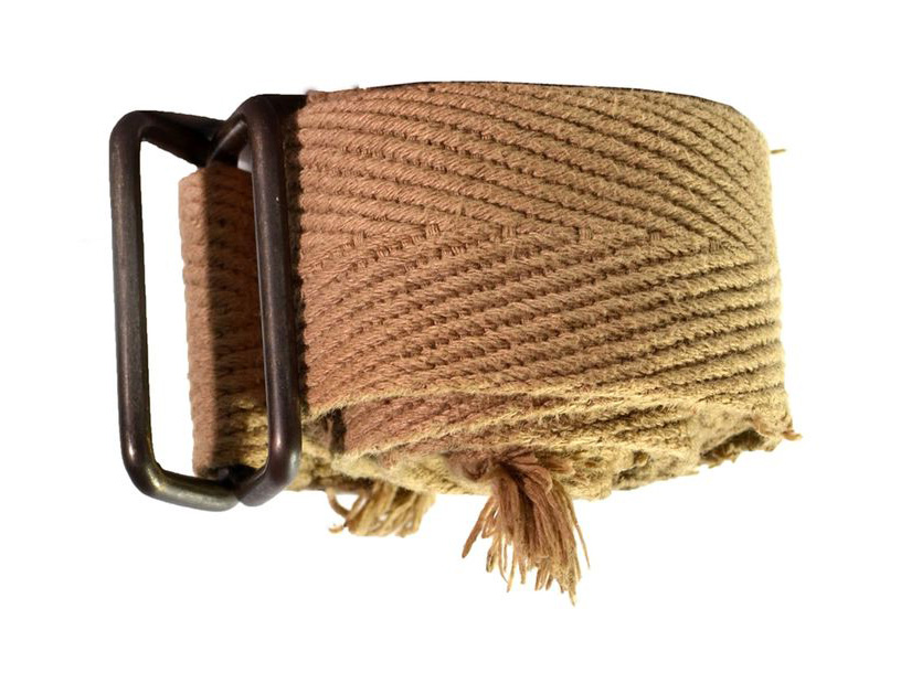 Стильный текстильный ремень, декорированный полоской и фирменным логотипом. Застежка на металлическую пряжку. Отличный вариант на каждый день.